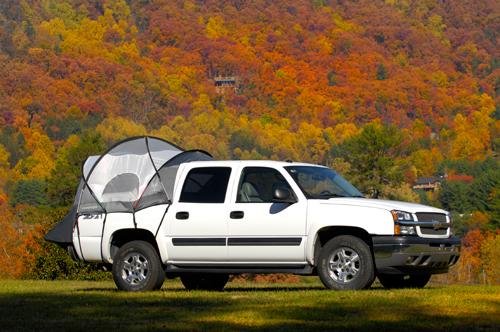 Campright Truck Tents. Making "roughing it" not so rough. Available in 6 sizes to fit most trucks! A whole new level of camping comfort! Spending time in the Great Outdoors doesn't mean tossing and turning on the possibly-wet, probably-cold ground. So get up! Campright's Truck Tents offer a nice compromise... you're still roughing it, but with extra comfort, and without the hassle of tarps, stakes and guy lines. The ultimate mobile home for your adventures! Roomy enough to stand up in, with plenty of ventilation ... there's even a skyview vent so you can sleep out under the stars. All in an easy-up, easy-down, ULTRA-durable package! Even better, we've got the Tents in 6 sizes to fit almost every size truck bed. Sleep soundly: Largest interior room of any truck tent... you can even stand up to get dressed; Floorless design allows for set-up without removing gear from truck bed. Color-coded poles and pockets make for quick set-up; Large doors and windows with no-see-um mesh and storm covers; Rain fly with clear vinyl storm windows for weatherproofing; Skyview vent for more light, better ventilation, and sleeping under the stars; 4 gear pockets and 6 D-rings for interior storage, lantern hanging and organization; Protective heavy duty straps and nylon buckles won't scratch your truck's finish; Includes stuff sack and instructions. State Size. Order yours today! Campright Truck Tents